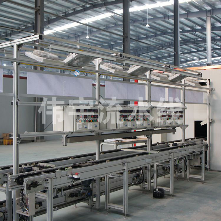 裝配流水線是人和機(jī)器的有效組合,最充分體現(xiàn)設(shè)備的靈活性,它將輸送系統(tǒng)、隨行夾具和在線專機(jī)、檢測(cè)設(shè)備有機(jī)的組合,以滿足多品種產(chǎn)品的裝配要求。